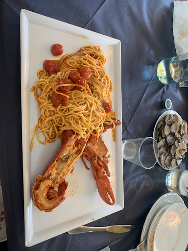 Read moreEsperienza angosciante. Siamo venuti a mangiare un mercoledì a pranzo con i nostri nonni anziani. Locale stra pieno con fila chilometrica per sedersi. Nonostante la nostra prenotazione abbiamo comunque dovuto aspettare mezz’ora per sederci, e la cameriera ci ha fatto sedere solo per via dei nostri nonni. All’ingresso il delirio, gente che spinge e che chiede informazioni sulla propria prenotazione, le cameriere ignoravano tutto e facevano sedere le persone a caso, senza basarsi minimamente sulle prenotazioni che a quanto pare sono inutili. Riusciamo a sederci e ordiniamo (altri 15 minuti), dopo mezz’ora iniziano ad arrivare i piatti. Antipasto freddo scadente al massimo, polipo stoppaccioso e insalata di mare con un sapore strano, si sentiva tantissimo quanto niente fosse fresco o di qualità. Dopodiché ci arrivano i primi, spaghetti con le vongole e linguine con astice. Gli spaghetti erano insipidi e pieni zeppi di olio, tanto che abbiamo dovuto versarlo in un altro piatto, le linguine con l’ astice erano semplicemente linguine al pomodoro (crudo e per niente cucinato come si deve) con un astice di fianco che non era niente di che, anche quello assolutamente non fresco o di qualità. Porzioni enormi, ma inutili poiché il cibo è assolutamente scadente, sarebbe meglio fare porzioni più piccole ma migliori, concentrarsi sulla qualità invece che sulla quantità. Anche il servizio e l’organizzazione del locale totalmente da rivedere, persone totalmente incapaci di gestire un attività che deve dare un servizio...