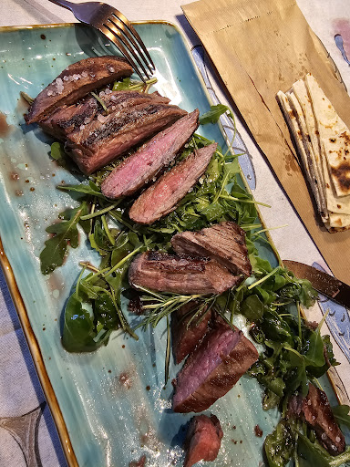 Somehow I think, I just been not lucky. I had enough of the fish. Something I must not be the only one around here..so. beside the hundreds of great fish restaurants.. why not start a nice steak house. But ok Rimmini .so we eat the same fish and again. But I tried. Started of ok. But not red, as I ask for. And not even close. But ok. But service was great. Wanted to solve it eyc. So .. I think, I just been at the wrong moment. The other things I have seen passing by. Ok. Fish. Looking great. The house wine. Again.. why even think about am bottle. . So, yes. Pity.. but things can't be always falling your direction.. still ..I would suggest. Give it a shot. Ps...8the picture looks more "red" than it was. The meat was more close to grey/ really medium done..but ok ps2 I still not figure out these tastless mini pancakes slices?? Just give some nice bread.. / baguette... ps 3.. I would put a new idea about the tiramisu.. this is not what you like to serve...in this nice...