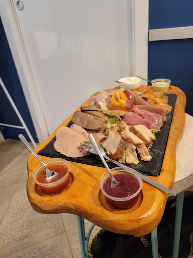 Read moreSe fossimo ai tempi dei Farnesi e dell'editto discilinare della mortadella felsinea l'autore della mortadella "spada e salmone" salirebbe sul rogo. Ma per fortuna oggi non siamo in quei tempi e alla salumeria marina ho potuto gustare un tagliere di salumi tutti a base di pesce. Per il mio gusto superlativa la soppressata di spada e tonno ma tutti gli 8 salumi di mare meritano un assaggio a partire dalla porchetta al marlin e alla già citata mortadella salmone e spada. Come spiega con dovizia di particolari il personale , preparato e gentile, si tratta di preparazioni artigianali cotte a bassa temperatura dei vari pesci. Con questa tecnica si ottiene un ottimo prodotto che ha la consistenza del salume e un sapore eccezionale "sia carne che pesce". Doveroso quindi prendere il tagliere di assaggio che insieme agli 8 salumi di mare abbina 2 salse 2 marmellate e una giardiniera oltre che piadine e grissini appena sfornati. Noi abbiamo aggiunto uno gnocco fritto e abbiamo preso anche un fritto di sardonciccioli. Per una spesa in due di 55 euro vino e acqua compresi. Che dire una esperienza valida che consiglio a tutti e che mi fa pentire per avere assegnato altre volte 5 stelle a un locale perché in proporzione per originalità, qualità, rapporto prezzo/ mangiato a questo locale ne avrei dovuto dare...