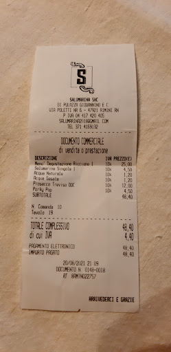 Read moreVous DEVEZ manger à la Salumarina si vous êtes de passage à Rimini! Nous cherchions un bon petit restaurant un peu éloigné des grands axes touristiques et bruyants et sommes tombés par hasard sur ce coin de paradis.