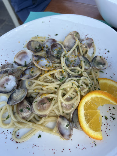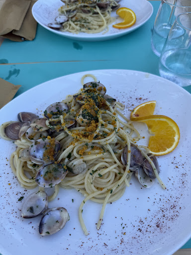 Read morePiacevole scoperta Ci siamo stati diverse volte a fine agosto ed i primi di settembre, posizione sul mare con una vista splendida. Tavoli semplici disposti bene e ordinati, servizio cordiale e attento , nessuna attesa e sempre con il sorriso. In particolare le ragazze, molto brave. La cucina elaborata, nonostante le porzioni dei primi un po’ ridotte (intendo di pasta no condimento) ne abbiamo apprezzato la qualità. Consiglio i primi al polpo e alle vongole sono incredibili. Tagliata di tonno buonissima, mare caldo servito perfetto. Le pizze ottime , sia margherita che ai frutti mare, se da asporto servite anche da portare sulla spiaggia già tagliate. Consigliato anche per la colazione , abbiamo preso i saccottini al cioccolato ancora caldo ed cappuccini anche di soya ...
