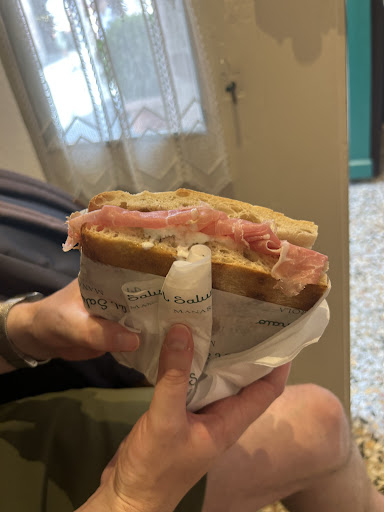 Adorable sandwich shop in Manarola up the hill from the waterfront. The man working in the shop was so kind and friendly. He explained how everything worked and would show any meat or cheese you had a question about. There was one woman making sandwiches in the back, but you could watch her cut the cheeses and meats fresh from inside the shop. I got pesto on my sandwich and it was one of the best pestos I’ve ever had. There was a few people ahead of me waiting for sandwiches, but I waited less than 10 minutes. It was quick and well worth the wait. The sandwich was by far the BEST I had the entire time in Italy and it was such a good price for how much...