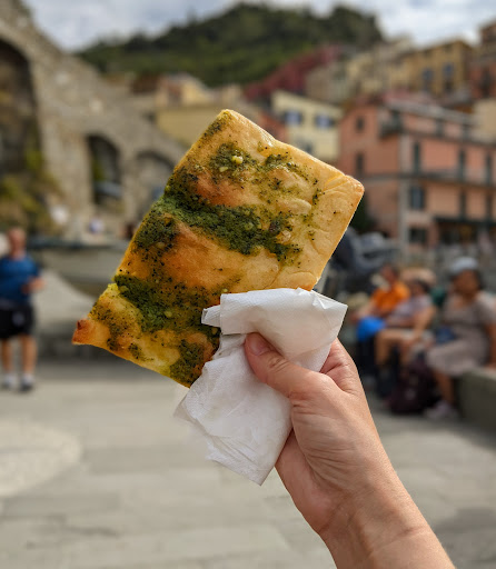 Yes yes yes! Their deserts are great. Just go to the right hand side of the counter and fill your boots with whatever they’ve got behind that glass screen it will keep you going for the walks. Especially if you plan on going up to vernazza. That’s a hike! It’s not cheap hence the 4 stars as it’s definitely one of the more expensive towns. We didn’t realise but some towns are cheaper than others here and this was one of if not the most expensive. However the food is very good although if you’ve just walked from riomaggiore and just had some amazing pizza for a slice of the price your going to be a bit disappointed. However if you don’t visit that particular pizzeria and just get for the train you can’t go far wrong with this place. We got the calzones and quiches and they were...