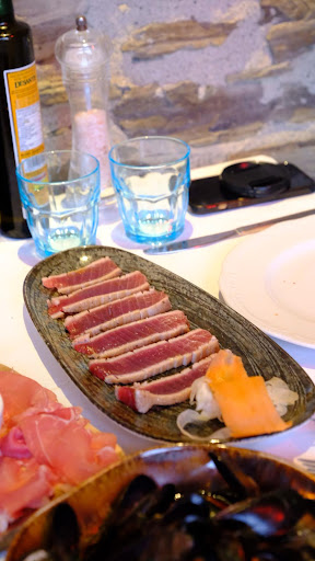 Read moreOriginally I tried calling and making a reservation but I couldn't seem to get through. Luckily, my husband and I were staying in Manarola and this place was a couple minute walk from our Airbnb. We were THRILLED to walk over and get in right at opening. We came at the perfect time so we were able to get a spot right at the balcony railing. The views are stunning! We ate a lot here so brace yourselves if you're reading this review - it may take a bit hehe. Our first dish we received was the octopus and potato salad. I will never say no to an octopus salad and this one did NOT disappoint. We then ordered TWO of the mixed fish starters. This is advertised as a 12 plate tasting course. It was SO MUCH FUN. Our entire table was full of plates - we even had plates atop of other plates. While all 12 plates were good there were some ABSOLUTE STARS. One was a piece of fish with what looked like pickled red onions atop. THE ANCHOVIES... I live in Canada and all we have are canned anchovies. I tried them before and coughed them out. These anchovies were just eye opening. There were two different plates and both were amazing for us but the one with the lemon zest literally had our eyes popping out of our heads and our jaws were dropped. It was like the entire world stopped when we ate those anchovies. I had thought they were vile my entire life but I took the chance to eat it in one go and it was easily the loveliest surprise my tastebuds had ever been gifted. After being deceived by canned, overly salty and flakey anchovies - these were like a whole different species. Just PHENOMENAL. We had a mixed seafood salad with olive oil, olives and peppers. There's something about a seafood salad - it will always be a standout for me! The puff pastry bite with fish was a different take than the mostly raw or lightly cooked and barely touched fish we'd been eating. We also ordered a grilled fish. We found this one to be the most disappointing just because it was a traditional take to eating. We were having so much fun with the 12 taste testers we found this a bit lack-lustre. We did enjoy the fish - it just wasn't EXCITING like the first part of the meal. We then shared a tiramisu which was the perfect way to end our meal. Tiramisu is not pictured because we inhaled it. Sorry! ALSO not pictured is our grilled fish. I took a video of the entire table with the fish in the view but it won't let me upload it :( We drank house white and also had lemon soda which is the...