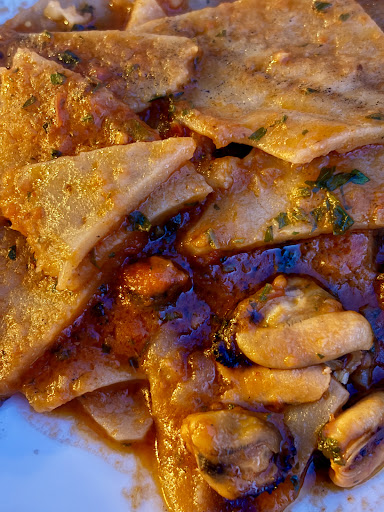 Il personale è stato estremamente disponibile e gentile, in grado di dare ottimi consigli sulla scelta dei piatti. Personalmente ho adorato i testaroli con ragù di muscoli (tra l’altro consigliato dalla cameriera): ottima la pasta ma sopratutto il sugo, che si presentava super saporito e ricco di muscoli. Come secondo ho preso i muscoli ripieni (anche questi buonissimi).