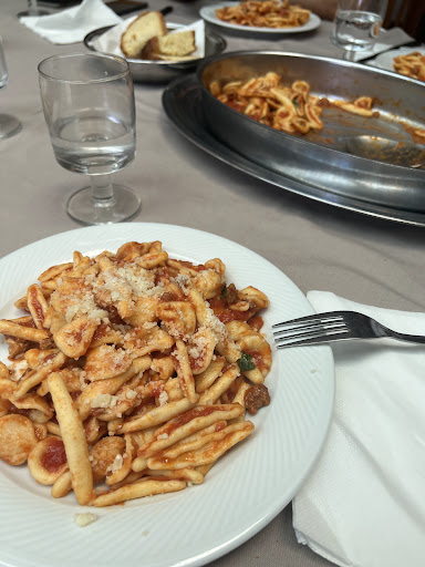 Read moreSiamo stati a pranzo oggi con la mia famiglia ed é stata una delle peggiori esperienze della mia vita. Accolti in un locale scarsamente climatizzato, ci é arrivato un antipasto "senza infamia e senza lode' di salumi (a parte il prosciutto di buona qualità, dubito sulla freschezza del resto) e mezzo bocconcino di mozzarella a testa (Non esagero era davvero mezzo), micropezzetti di frittata, gateau di patate, ricotta e verdure grigliate. Due primi: un quadratino di lasagna non si sa di quale giorno palesemente riscaldata più volte e ravioli di ricotta al pomodoro (l'unica cosa da 'ristorante' mangiata oggi). La grigliata di carne era pietosa: un pezzettino di Agnello, una fettina di vitello e mezza salsiccia (anche stavolta non esagero, visto che era una metá di una salsiccia aperta) e 6 foglie di insalata. Sulla frutta dico solo che sarei curioso di sapere quante volte é entrata e uscita dal frigo. Poi le due cose peggiori (una giornata diciamo 'storta' per il cibo può anche capitare): siamo entrati alle 13.45 e siamo usciti alle 18.30 in una sala non completamente piena e con un menu fisso e poi il volume della musica per 2/3 del pranzo praticamente in stile discoteca. Tutto questo per 25€ a persona
