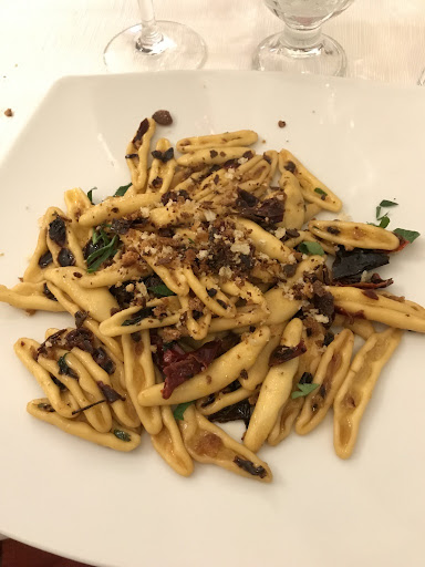 È stata la prima volta che mi sono fermato in questo ristorante. Appena si entra si viene avvolti da una grande accoglienza e da vera bellezza della struttura essenziale ma bella. Il menù è ben assortito a costi accettabili. Le pietanze sono ottime, cucinate bene e soprattutto con prodotti ottimi (olio eccezionale!!!!). Questa volta ho assaggiato le loro bruschette: funghi porcini freschi, profumati e ben callosi; la porchetta era eccezionalmente buona. Ho assaggiato quella presa da mia moglie con un prosciutto perfetto, dolce e saporitissimo. Ho preso un primo veramente cucinato ad arte: strascinati (piccoli e fatti veramente alla lucana) con peperoni cruschi e mollicati: di solito la mollica è molto ricca di olio.....ma la moglie del titolare la cucina ad arte: poco olio, mollica sgranata piccola ed ottima. Con i peperoni rendono il piatto veramente ottimo. Il sorriso, la cordialità e la disponibilità del titolare e del personale completano il tutto. Ci tornerò e la prox volta proverò i secondi. Dimenticavo: vino aglianico della casa ottimo....