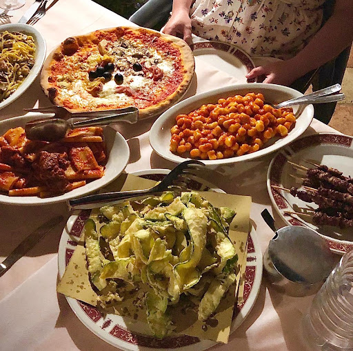 The server was nice and kind and brought us a high chair for our son after we asked for it. We wanted to order pizza but were told that it wasnât the right time, that it had to be other items from the menu so we ordered water, a starter of deep-fried stuffed olives, gnocchi with tomato sauce and pappardelle with lamb ragĂš. I ordered an ice tea from the menu but was told they didnât have it. The food arrived fairly quickly, which was nice. The starter was good but to pay âŹ7 for about 7 stuffed olives and a small pile of bland potato chips seemed a little too much. The gnocchi were really tasty, buttery soft and fresh. The sauce was a simple pomodoro sauce so there wasnât much to it but the lamb ragĂš was a big disappointmentâthe pasta was fine but the sauce didnât taste like much and there wasnât pretty much any meat to be found, only three meatless bones. The americano was awfully burnt.
