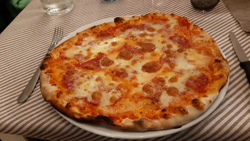 Read moreHo mangiato due volte qua e entrambi le volte sempre in comitiva. La prima volta era con la mia classe tanti anni fa' e onestamente l'unica cosa che riesco a ricordarmi è il dessertOne (l'avevo assaggiata già, ma più piccola) con il rito della crème brûlée, infiammata con l'accendino, molto suggestiva. Ultimamente ci sono stato con la mia squadra e devo ammettere che non è cambiato nulla: i camerieri molto educati e gentili si mettono sempre a disposizione, tra una portata e un altra. L'attesa è normale in base a cosa ordinate e c'è un menù molto vasto con la possibilità di ordinare la pizza (anche con variazioni) cotta nel forno di pietra; x antipasto il tagliere di carne accompagnato dalla pizza bianca con il rosmarino e patatine fritte che arriveranno come contorno. Il cibo è tutto buono...perché ho visto che anche propietari e collaboratori mangiavano lì lo stesso cibo. Si può anche prendere a fine pasto il caffè, l' ammazza-caffè, gli amari, ecc. Avrei messo 5 stelle se ci fosse stata la possibilità di fare un conto separato, forse non possibile, dati i tanti ordini (di 13 persone circa). Nonostante tutto per la varietà e quantità di cibo e qualità del servizio il prezzo resta comunque...