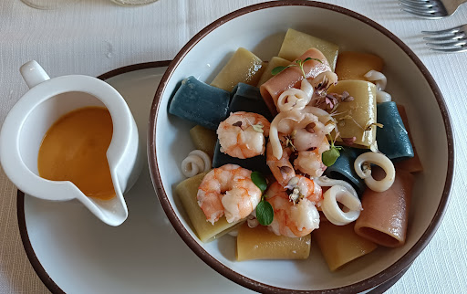 Read moreSiamo tornati oggi per pranzo, stavolta anche con nostro figlio visto che non era mai capitato venisse con noi le volte precedenti.. e a quanto pare non eravamo stati abbastanza bravi nel descrivergli la "Bellezza" di questo posto, visto che è rimasto piacevolmente colpito da ogni dettaglio. E quando parlo di Bellezza intendo tutto.. A partire dall' ambiente molto confortevole ed accogliente, passando per i piatti uno più buono dell' altro.. e finendo con una caratteristica che io ritengo davvero speciale: le 4 chiacchiere a fine pasto con la (altrettanto speciale) chef Annarita. Sarà che io sono letteralmente innamorata di questa Donna per la persona che è, oltre che per l' indiscussa bravura in cucina.. ma questo suo gesto di uscire dalla cucina, una volta finito di cucinare, e salutare gli ospiti lo trovo di una delicatezza incredibile che ti fa sentire davvero "a casa"❤️ Insomma si viene qui per "stare bene" mangiando prodotti di qualità eccellente, cucinati in modo altrettanto eccellente! Oggi poi abbiamo preso per la prima volta i paccheri alla frutta con calamaro riccio, gamberi e salsa di datterino giallo.. beh, un esplosione di piacere.. o come lo definisce meglio la chef "un percorso di emozioni".. Emozioni che ti accompagnano dall' antipasto al dolce, senza deluderti mai qualunque cosa tu decida di assaggiare. Non saprei quale definire (tra i tanti che amo) come il mio piatto preferito, ma so di certo che è il mio...