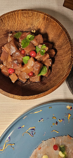 Annarita, la regina indiscussa dei fornelli, riesce a coniugare la cucina della tradizione con una raffinatezza e un'originalità che lasciano a bocca aperta. È difficile immaginare come possano convivere in armonia sapori così lontani, ma qui ogni piatto racconta una storia, un viaggio tra oriente e occidente che incanta chiunque abbia il privilegio di sedersi a tavola.