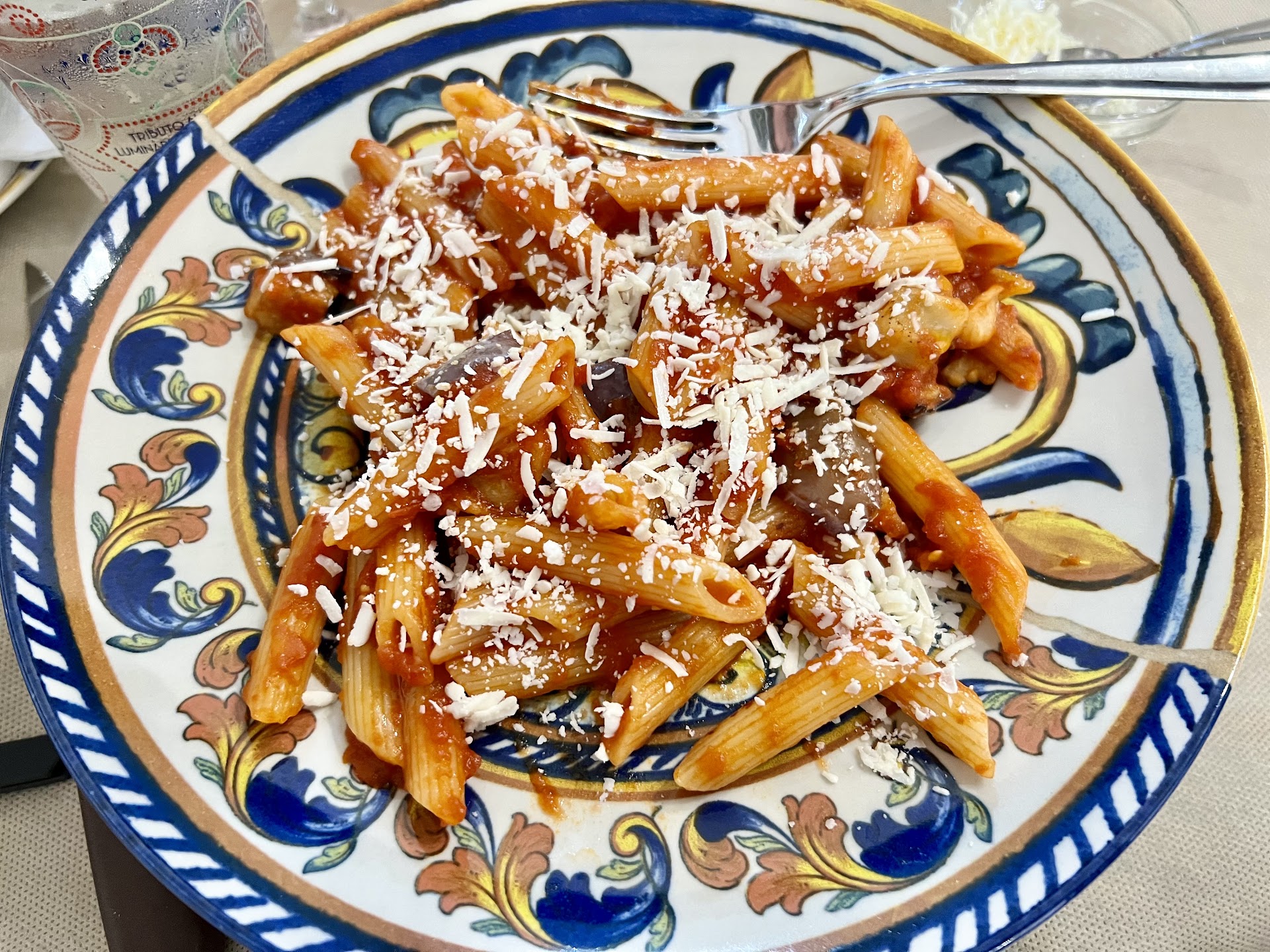 Circa un’ora dopo il cameriere è tornato per informarci che il piatto scelto non era più disponibile e che avremmo dovuto sceglierne un altro. Dopo un’ora e mezza dall’ordine, finalmente è arrivato il cibo. La mia pizza Norma era talmente salata che sembrava fosse stata immersa nel mare; forse però questo è il gusto standard di questa pizza?