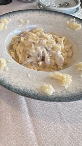 When I questioned the charge, the server looked ashamed and offered two free shots of limoncello as a peace offering. Our bill also included a âŹ4 cover charge (per usual) plus a 12% service fee. My pistachio pesto penne was âŹ27 and clearly not made with fresh pasta.