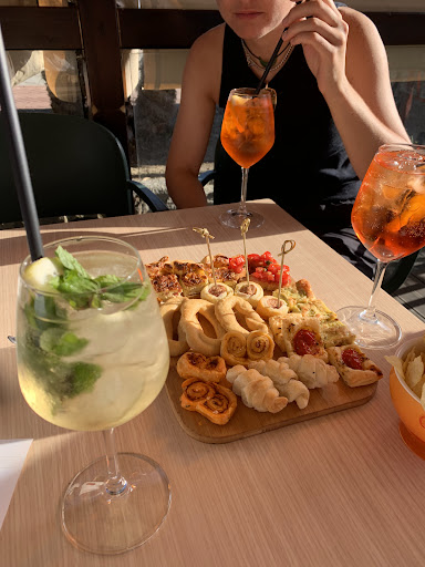 Read moreEnvie de nous rafraîchir alors nous nous sommes installés en terrasse extérieure, la serveuse parle pas du tout français, il est 11h30 et nous commandons un shweppes tonic et une bouteille d eau gazeuse, on nous demande si c est apéro et nous disons NON NON !! Et la quel fut notre surprise 😢 on nous porte un gin tonic avec des apéritifs !! Heureusement que c était l heure de l apéro mais bon , je pense que la serveuse n a pas peut en considération notre demande, bon c est les vacances on passe outre, mais bon si on avez dû on aurait mieux fait de commander deux bouteilles d’eau . Après le lieu est agréable et convivial, dommage qu ‘on nous a prit vraiment pour des touristes !! Car jusque là, les Italiens savent recevoir sauf ce...
