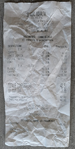 Read moreScorretti...... Ti fanno pagare 1 euro per la sostituzione di un ingrediente..... Non l'aggiunta...... Se io aggiungo un ingrediente sono d'accordo a pagare di più.... Ma se io tolgo il salame normale per mettere il salame piccante, non si dovrebbe pagare 1 euro in più..... Oltretutto non viene neanche comunicato da chi prende l'ordine..... Lo scopri sullo scontrino. E non c'è neanche scritto sul menù che la variazione costa 1 euro. Doppiamente scorretti!!!!!!! L'informazione e la correttezza verso il cliente prima di tutto.....!!!!!!!! La pizza non è niente di speciale..... Sottile..... E come tante....... Nulla che ne valga la pena. Il bello è che il personale non ha neanche capito il principio della correttezza..... Cercavano solo di far valere le loro ragioni........