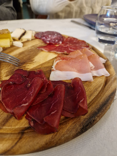 Il padrone di casa (e chef) ci ha accolti ed illustrato il menù degustazione (non esiste la carta) che consiste in un tagliere di salumi e formaggi, 4 assaggi di antipasti, un primo a scelta (tra 2 opzioni), un secondo a scelta (tra 2 opzioni), dessert, 3 calici di 3 diversi vini di accompagnamento alle varie pietanze, acqua e caffè/digestivi per un costo di € 35/persona.