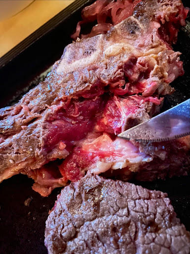Far below expected! I asked for my T-bone medium rare, not raw and cold. Further was the pasta (partner had it) really imbalanced and salty, the tomato sauce tasted like it came out of a supermarket container, and not even the fancy one…