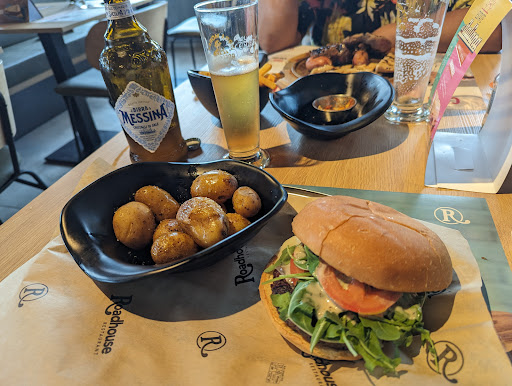 C’è qualcosa che non va! Da anni pranzo nei ristoranti Road House, ma qui a Rivoli, dove é stata la prima volta, ci sono problemi in sala e in cucina. Arriviamo alle 14 (previa chiamata di cortesia per verificare che la chiusura sia le 15 come indicato) con il locale ovviamente quasi vuoto e ci danno uno dei peggiori posti, davanti alla porta della cucina. Chiedo di essere spostato ad un tavolo migliore e vengo accontentato, ma mi chiedo perché non hai pensato tu di farmi vivere una buona esperienza visto che potevi farlo. Ordiniamo alette di pollo, oggettivamente buone, e la tagliata di pollo Roadhouse. Imbarazzante! Una fetta di petto di pollo bianca (sembrava bollita) con due righe nere della piastra, strappata più che tagliata, appoggiata su della rucola ‘depressa’ e due pomodorini con la condensa sopra. Mi spiace, ma al di là del prezzo di 13.90 euro, non potete servire in un ristorante che ha fatto il suo successo grazie alla griglia un piatto così! Chiudo dicendo che non c’è stato upselling su dolce o caffè, ne tantomeno attenzione nel ricordare che avevo dei punti per uno sconto al prossimo giro. Spero che questa recensione sia utile al manager per supportare il team e migliorare...