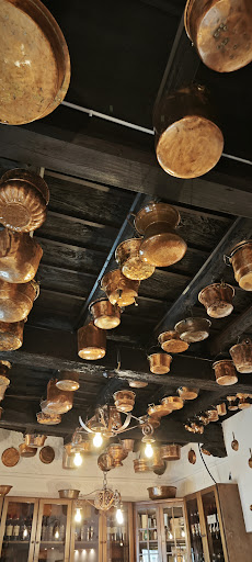 Read moreinteressato dalle ottime recensioni lette in rete, con amici abbiamo provato questa enoteca, che dall'esterno sembra un semplice bar di paese, poi all'interno inizia a stuzzicare la fantasia con una bellissima sala, il cui soffitto è arredato da tantissimi pentole e non solo di rame, come si puà vedere anche dalle foto qui sotto. Non c'era menù alla carta, ma menù fisso, ed abbiamo iniziato con una serie di antipasti davvero ottimi, nota di merito è stata la caponata che era davvero divina, il crudo davvero ottimo e abbondante, le melanzane impanate e fritte, spazzolate. Poi abbiamo iniziato con una serie di primi che abbiamo assaggiato davvero ottimi, per poi passare al dolce saltando a piedi pari il secondo in quanto eravamo già pieni. Nel complesso un'ottima scelta, c'è qualità e quantità, ottimo anche il rapporto qualità/prezzo. Buona la scelta dei vini. Ottimo il servizio al tavolo. Recensione di...