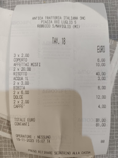 Read morePranzo della domenica. Qualità del cibo ottima così come le porzioni ma prezzi da rivedere per essere a Robecco; certi costi nemmeno a Milano. Ossobuco con risotto molto buono, cucinato davvero alla perfezione (20,00 euro contro i 16/18 euro di Milano). Tagliere di salumi nella media, porzione giusta per due persone poco affamate servito con verdure sott'olio (un po' troppo salate). Trovo esagerato il sorbetto al limone fatto pagare 6 euro e il caffè 2 euro quando anche in Autogrill (per citarne uno caro), spendi 1,40 euro. Un tagliere diviso in due, due ossibuchi con risotto, due sorbetti, due caffè, due coca cole e una bottiglia d'acqua 81,00 euro. Il personale è cordiale ma jl servizio un pochino lento. Abbiamo aspettato 25 minuti per il tagliere. Ritornerei per la bontà dei piatti ma conosco posti di pari livello e qualità a prezzi...
