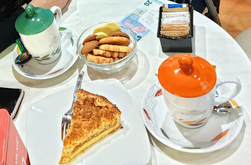 Read moreBar eccellente! Superconsigliato +++!!! Personale gentilissimo e sempre col sorriso! Ottimi thè ed infusi, sempre serviti con biscotti buonissimi (presumibilmente artigianali, vista l'alta qualità). Ottima anche la cioccolata calda, disponibile in molte versioni (con arancia, al peperoncino, al cocco, con biscotti, etc etc.) Molto bella ed accogliente la sala da thè, con tavolini e divanetti ed una vetrata ampia da cui è stato bellissimo vedere la prima neve dell'anno, stando al tepore con una squisita bevanda calda. Molto buona anche la torta che ho preso (sbriciolona alle mele), e molto invitanti anche le altre... non è stato facile scegliere 😅. Ambiente molto positivo, consiglio a tutti, che siate da soli o...