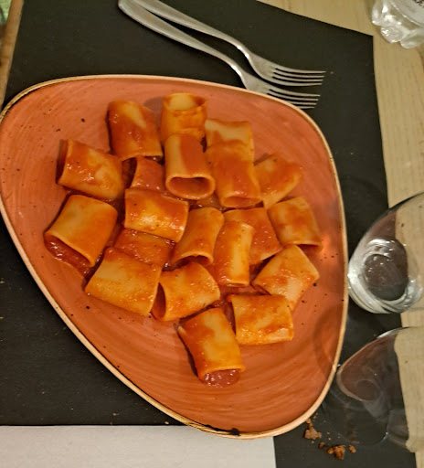 ย ย ย Read moreLocale moderno all'interno che non rispecchia per niente il tema "taverna" fuori all'aperto forse รจ piรน carino ma dev'essere curato meglio nei dettagli. A noi hanno detto che per un incoveniente legato al fatto di aver dovuto spostare i tavoli dall'esterno all'interno causa pioggia, ha fatto sรฌ che siamo stati serviti alle 16 di pomeriggio, dalle 14:30 che avevamo preso l' ordinazione, devo dire che non ci hanno convinto. Poi chiedevamo info alla cameriera sulla disponibilitร dei piatti ma andava in cucina e si dimenticava di noi..insomma pura confusione! Parlando di cibo, antipasto niente di che, il primo con zucchine e gamberi ve lo sconsiglio, insipido senza arte ne parte! ร stato mandato indietro internamente. Di decente abbiamo apprezzato, gnocchi lunghi con funghi e tartufo(da quello che hanno detto non ci sono mai, vi serviranno le fettuccine al posto degli gnocchi come hanno fatto con noi) poi c'รจ il brasato nero, cotto e molto saporito forse troppo, ma sa di alcool al retrogusto, si sร del vino deve rimanere la dolcezza l'alcol deve evaporare ragazzi!! Consiglio il personale di rivedere sia il servizio che la cucina altrimenti la vedo dura l'arrivo della...
