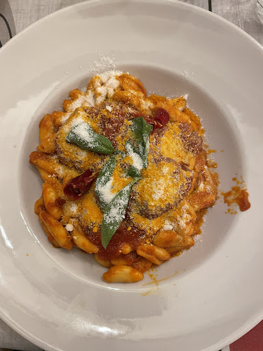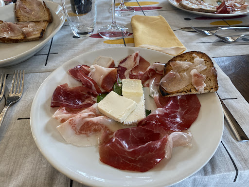 Ciò che davvero rende unica questa realtà è la passione e l'impegno che traspaiono nella selezione delle materie prime per la preparazione dei piatti. Il ristorante, strettamente collegato all'azienda agricola di famiglia, offre una cucina che racconta la tradizione e il rispetto per il territorio. I salumi, tra cui spiccano quelli di maialino nero, una razza autoctona allevata con grande dedizione, sono di qualità eccelsa. La sala di stagionatura, visibile agli ospiti, testimonia il processo naturale e senza additivi con cui vengono conservati, rendendo l'esperienza ancora più autentica. Abbiamo assaggiato questi salumi come antipasto, e ci hanno subito conquistati per la loro bontà.