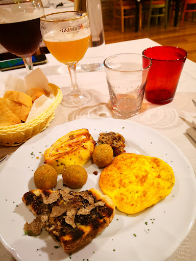 Abbiamo scelto il menù al tartufo (consigliato!) composto da: antipasti al tartufo; primo a scelta (noi eravamo in 4 ed abbiamo preso 2 tagliatelle e 2 ravioli); secondo a scelta (abbiamo preso il filetto al tartufo e una porzione fuori menù di agnello); contorno a scelta (2 porzioni di patate arrosto e 2 di insalata); dolce a scelta (tiramisù) e caffè. I piatti erano tutti abbastanza buoni ed anche abbastanza farciti con scaglie di tartufo, ma chiaramente molto dipende dalla sapidità e dal profumo del tartufo stesso, e questo purtroppo un po' è mancato (col tartufo si sà... ci vuole fortuna!). Ad esempio negli antipasti (comunque sfiziosi) la frittatina non sapeva molto di tartufo... nonostante ci fosse. In aggiunta fuori menù abbiamo preso due porzioni di porcini ma il sapore di fondo era un po' amaro... anche lì si va a fortuna! Come primo piatto invece ho apprezzato di più i ravioli di ricotta molto buoni. Il filetto al tartufo era un burro, tenerissimo e ottima cottura al sangue come richiesto. Anche l'agnello era buono e ben cotto. Il tiramisù leggero anche se era poco cremoso e con tanti pavesini... Personale attento e gentile (a richiesta ci ha portato anche un tartufo in più da grattare sui piatti). Nel complesso penso che comunque ci si possa tornare, sperando di trovare un tartufo più saporito...