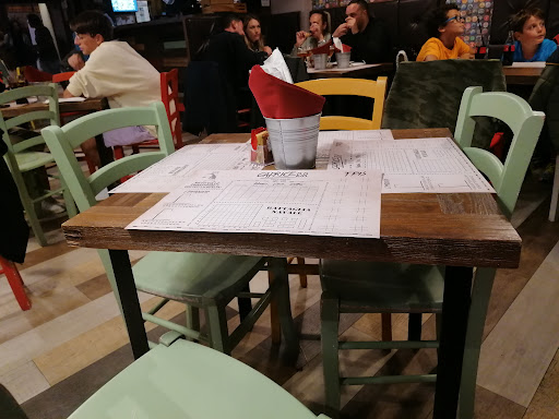 Read moreCercando delle soluzioni in centro dove poter mangiare, ci siamo imbattuti in una zona dove era presente il ristorante e la sala giochi. Appena entrati c’era una confusione non indifferente perché pochi minuti prima tante persone stavano seguendo una partita mentre cenavano. Ci era stato detto che il tavolo sarebbe stato pronto alle 9 e abbiamo aspettato (come dei fessi aggiungerei) perché mancava un’ora. Dopo circa 20 minuti siamo rientrati e il ristorante era completamente pieno, non sono stati rispettati gli ordini di arrivo e la gente non prestava attenzione a chi c’era prima, perché s’infilavano pur di sedersi il prima possibile. Dopo altri 20 minuti abbondanti ci siamo seduti, abbiamo aspettato tempistiche giuste per due panini e una porzione di patatine, una volta arrivato il panino era completamente secco, il bacon non aveva sapore, ci abbiamo dovuto mettere delle salse per insaporirlo. Che dire, i soldi spesi non valgono il prodotto che viene servito. Aggiungerei anche che nonostante il tavolo fosse libero da un pezzo, preferivano far passare avanti le comitive o comunque chi probabilmente avrebbe speso una bella cifra a cena. Inutile contraddire perché è stato notato da più persone intorno a noi. Peccato perché comunque a parte il cibo, il locale era molto bello e potrebbe essere...