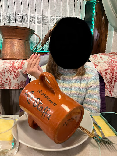 Read moreSono stato in questo locale con mia figlia a cena martedì 11 febbraio u.s.. in occasione di due giorni da trascorrere sulle piste da sci. Il concierge dell'albergo in cui alloggiavamo mi ha consigliato proprio il ristorante La Staffa (insieme ad altri due), locale che avevo già addocchiato il giorno prima per l'atmosfera informale e genuina che traspariva dalle foto, nonchè dall'ottimo rating. Così ho prenotato nel pomeriggio per le 20.00 e grazie alla vicinanza ci siamo arrivati a piedi. Poter bere un bicchiere in più di vino non è male. Il locale propone una cucina "casareccia" locale, dove la fanno da padrone primi piatti come le tagliatelle al ragù di cinghiale, porcini o salsiccia e tartufo e minestre di farro e funghi, e secondi di carne alla brace, ecc. Per rispetto della tradizione locale abbiamo ordinato piatti unicamente tipici della zona ma secondo me siamo stati traditi dal fatto che il locale era pienissimo e la cucina non è stata in grado di tenere il passo ed è andata in affanno. La proprietà, pur conservando l'informalità poco fa accennata, si è mostrata cordiale, e nonostante ci fosse del personale stagionale molto poco qualificato, con poca comprensione della lingua italiana, anche il servizio è stato discreto. Avrei voluto lo fossero anche le pietanze che ahimé sono state veramente deludenti e vado a spiegarmi in dettaglio. Pallotte cacio e ova: molto ben assemblate, morbidissime e ben condite, pur non esageratamente sapide. Molto buone Doppia porzione di Arrosticini di Pecora: Arrivati tiepidi se non addirittura freddi e non ben rosolati (un pò effetto lesso). Un vero peccato. Il grasso freddo dell'ovino non è il massimo. Caldi sarebbero stati tutt'altro. Agnello alla brace: anch'esso tiepido e in ritardo di cottura, nocnhe piuttosto tenace. Premetto che io cucino questi prodotti e soprattutto li mangio abitualmente e so benissimo che la carne di agnello deve essere leggermente rosata all'interno. Bhe, questa non lo era. Patatine Fritte (fatte in casa). Queste caldissime ma molli, quindi cotte non bene. E' tipico di quando non le si cuociono per il tempo sufficiente o perchè se ne cuociono troppe insieme e l'olio scende di temepratura. Tra l'altro ne è arrivata solo una porzione di due ordinate. Mi è spiaciuto veramente perché mi sono alzato deluso e sono sicuro che con meno gente il cibo sarebbe arrivato ad hoc. Che dire, la prossima volta, se ci sarà, andrà...