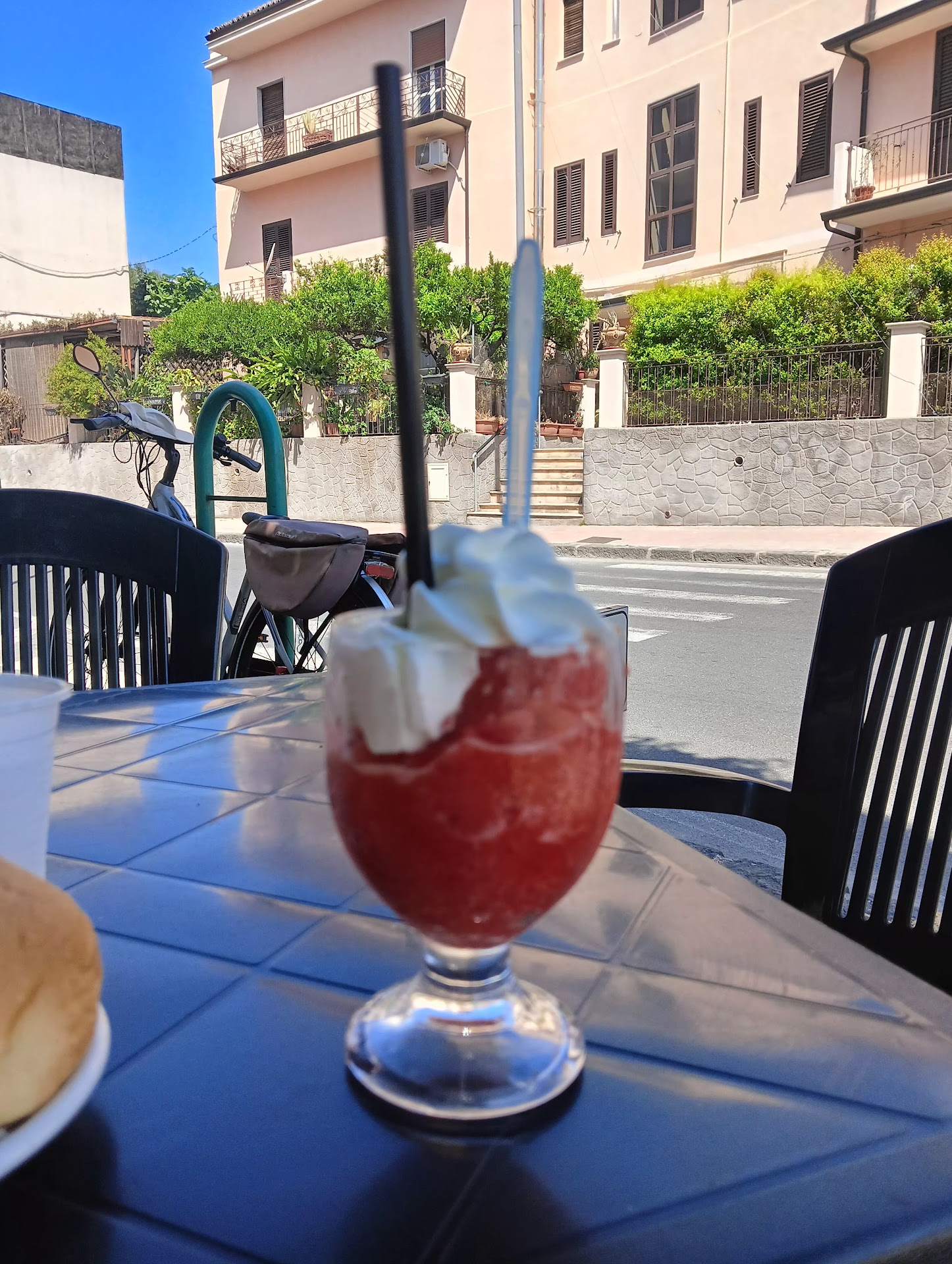 Read moreIl locale si è fermato nel tempo, molto datato. Non ispira, i tavolini all'esterno sono sul marciapiede, a pochi metri dalle aute che viaggiano sulla statale. Finiti gli aspetti negativi, tutto il resto è da 100 stelle, personale gentilissimo e simpatico, granite e gelati di qualità superlativa, è una tappa obbligatoria, alla fine gli aspetti negativi diventano pittoreschi, prezzi contenuti e...