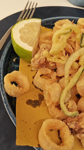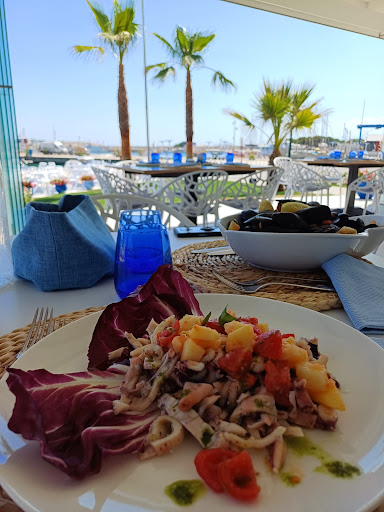 Read moreLocale accogliente e discreto, la vista sul porto è veramente incantevole. Abbiamo pranzato con vero piacere in questo luogo, una grigliata di pesce e una frittura di pesce, accompagnato da un bel bicchiere di vino bianco Cirò, per niente male...nulla da invidiare ai bianchi del nord Italia... Ci hanno accompagnato i nostri cani, che hanno potuto godere della bellissima vista. Ci sarebbe piaciuto provare i tavoli esterni, ma il forte vento ha scelto per noi, poi devo ammettere che la giornata era veramente calda. Ci è piaciuta molto la location, il servizio e la gentilezza dei camerieri, che inizialmente intimoriti del nostro cane maschio, hanno capito che "in modalità ristorante" sono dei pezzi di pane. Per chi volesse lasciare il cane a riposare post mare, c'è una bella pineta che crea ombra fino alle ore 14:00, la possibilità di ricaricare le auto elettriche. Il posto è sicuro, nelle immediatamente vicinanze sono presenti la capitaneria di porto etc. Ho notato che gli avventori fanno fatica a capire da dove entrare se provenienti dal patio esterno, guardando la vetrata, la porta antipanico è tutta a destra, dalla prospettiva non si vede molto. La frittura ha molte verdure all' interno, magari introdurrei la variante solo pesce, anche spendendo...