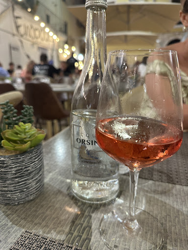 Locale carino e d'atmosfera per scelta di musica e catene di luci sopra i tavoli, situato al centro della piazza Personale di servizio molto gentile e disponibile. Manu' con scelta di portate piuttosto varia Costo non proporzionale a ciò che si mangia. Esempio ho preso il tagliere enopolio che presentava un pomodoro secco sott'olio tagliato il 4, due fette di prosciutto crudo, un giro di forchetta di cicoria saltata, cucchiaio di fagioli cannellini in scatola con qualche striscia di cipolla conditi con olio e sale, una bruschetta con una concasse' di pomodori e 4 foglie di rucola e due triangolini mini di grana, al modico prezzo di 11€. Una vera truffa. La pizza era molle, gommosa e pesantissima da mangiare (ma a detta del proprietario, spocchioso e arrogante, che era buonissima perché lui la mangia tutti i giorni. Se permetti credo che il cliente debba determinare se un piatto è buono o no). Ai bambini chiedo 4 fette di crudo e dei pomodori a insalata e mi porta la famosa concasse' per la bruschetta al modi prezzo di 6€. Un'altra truffa. PROPRIETARIO (o almeno chi prende le comande ai tavoli credo che lo sia) spocchioso, arrogante, superbo e soprattutto gentilezza e cortesia non sanno nemmeno dove sono di casa. Meno di zero stelle non posso dargli ma lo avrei fatto se possibile. Questo genere di persone non è proprio adeguato per attività con contratto al pubblico.