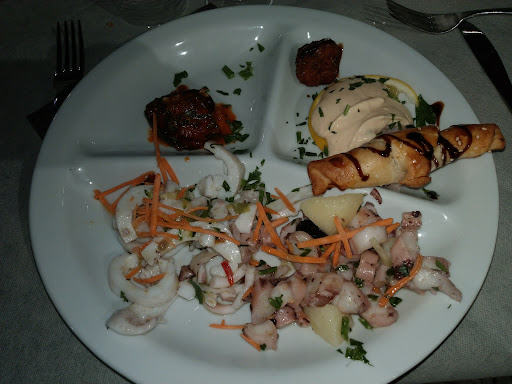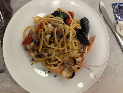 Read moreFrittura mista 14 euro..terribile! Comprendeva solo qualche gamberetto rinsecchitto e tanti piccoli pezzettini di calamaro, rinsecchiti anche quelli; sembravano strafritti e non erano polposi ma secchissimi. Le patatine fritte si sentiva assolutamente che erano scaldate...forse rimesse un attimo nell 'olio bollente( ma ne dubito visto che nn c c'era traccia alcuna di unto) e quindi per nulla croccanti e tipico gusto delle patatine scaldate. Arrosto misto cattivissimo; lo spiedino di salsicce buono ma il resto della carne ( capocollo che sembrava pancetta) piena di grasso! Per la carne almeno hanno ammesso la non qualità non essendo un ristorante a specialità di carne, ma di questa scarsa qualità della carne potevano informarci prima dell'ordine. In ogni caso anche la frittura rinsecchita di pezzettini di calamaro e qualche gamberetto è stata per nulla buona ma questa critica non è stata accettata nemmeno minimamente dicendo che è una questione di gusti. Un orecchietta al sugo per la bambina non ci ha convinto per nulla in quanto il sugo non era per nulla di pomodoro fresco e se lo era allora il sapore era tale e quale a quello dei sughi pronti. L'unica cosa buona è stata la gentilezza dei camerieri, attenti e carini e, il fatto che almeno non si sono...