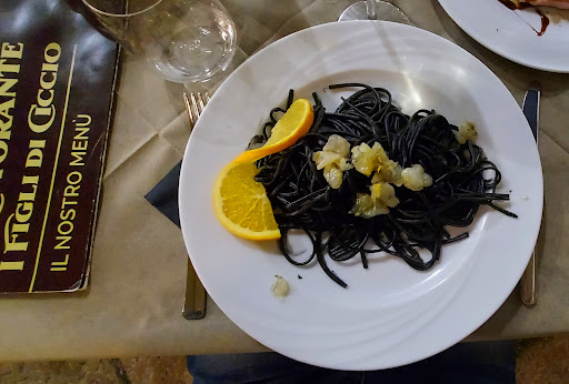 I figli di Ciccio è un locale attento alla forma e alla sostanza. Il servizio, per quanto tutto il personale di sala fosse estremamente cordiale e disponibile, anche ad una battuta, si qualifica sull'8 per via dei tempi di attesa che si son fatti sentire in particolare per l'antipasto che ci è arrivato circa dopo 30 minuti dall'ordinazione. La crudité era eccellente, il primo molto buono anche se nei troccoli alla Ciccio purtroppo la canocchia era un guscio vuoto. La grigliata mista era molto buona ma forse un po' scarsa per i miei gusti. L'unico appunto sulla cottura riguarda le seppie, forse un po' troppo secche, ma riconosco anche qui che si tratti di gusti. In generale I figli di Ciccio è un locale in cui avrete la possibilità di mangiare piatti di mare molto buoni e vari, serviti con attenzione e cordialità, anche se un po' troppo cari a mio avviso....