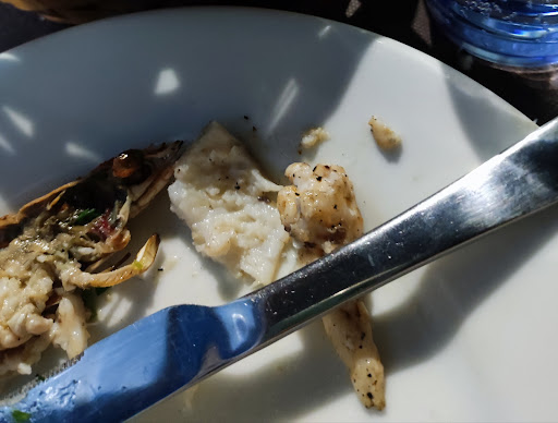Menù:9½ Antipasto: crudité di maree tartare di tonno. Pesce fresco del giorno e qualità ineccepibile. 10 Secondo: grigliata mista di pesce: 10 Dolce: crostata artigianale 9 Liquore: rucola e nocciolo di nespola 9