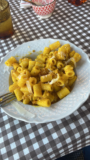 Read moreLocale moderno con colori pastello marrone e pistacchio che creano un ambiente rilassante.Buona esperienza nel complesso,la pizza con salamino discretamente buona, un po' bianca e non troppo croccante,ma con buon impasto.Meglio alla mia compagna che ha preso i tortelli Mantovani ripieni di zucca fatti in casa al burro fuso. Buona anche la meringata presentata bene ed il prezzo totale con due dessert di 33 euro è parso allineato alle aspettative.Unica cosa negativa? L'ambiente ha un impianto di scrsa aspirazione ed è quindi saturo di "odore di cucina" con i vestiti invernali che si sono abbondantemente...