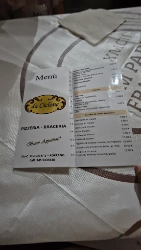Read moreOttima la pizza Da Ciclone, leggera, equilibrata, fatta con ottimi ingredienti. Siamo andati a mangiare lì una sera d’estate, abbiamo mangiato all’esterno, peccato che i tavolini erano un po’ precari. Comunque nella zona una delle migliori pizze! Ottimo rapporto...