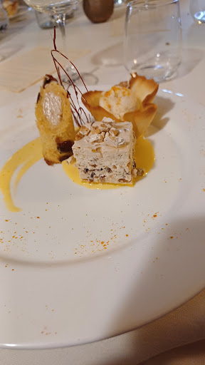 Read moreIl locale si trova nel piccolo comune di Roletto, proprio adiacente alla casa comunale. Anonimo all'esterno è invece elegante e raccolto all'interno con soffitto con travi a vista e camino. La cucina: inaspettatamente di alto livello. Pur se il locale è stato segnalato dalla guida Michelin nel 2018, ero scettico all'inizio ma mi sono dovuto ricredere. Tutto ottimamente cucinato ed impiattato (anche l'occhio vuole la sua parte) dallo chef e patron Mario Agu', coadiuvato in sala dalla moglie e da personale sempre molto cortese e disponibile. I piatti della tradizione piemontese sono rivisitati in chiave moderna. Ottimo il tris di antipasti caldi ed il baccalà in olio di cottura con agrumi e salsa tartara; tra i primi notevoli i fagottini di polenta allo stracotto di bue e, tra i secondi, eccezionale il maialino in crosta di pane speziato alla birra con puré di mele. Degni di nota, tra i dessert proposti e provati, la mousse di zabaione ed il semifreddo al torroncino, entrambi accompagnati da un fresco sorbetto ai frutti di bosco. Prezzi più che onesti se rapportati alla qualità del cibo e del servizio. Sicuramente...