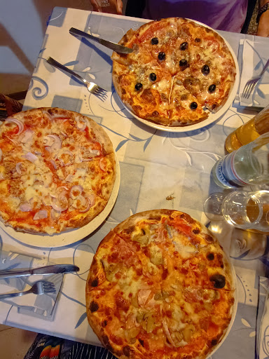 Read morePotessi dare zero stelle le darei, e non parlo da cliente (fortuna per me, ma non per scelta mia). Sono entrato con la mia ragazza e un paio di amici in questa """"pizzeria"""", a parte che non c'era NESSUNO ad accoglierci all'ingresso, quando ci siamo fatti notare, quello che crediamo fosse il proprietario ci corre incontro, gli diciamo che siamo in 4, ci guarda, e ci caccia via in un italiano imbarazzante che abbiamo faticato a capire, senza neanche guardarci in faccia. Quello che ci sembra di aver capito è che il ristorante era pieno e che quindi non potevamo stare, da precisare che ci saranno stati occupati 3 tavoli su una trentina... Temo fortemente che avendo intuito fossimo clienti della piscina sottostante (eravamo tutti vestiti, magari si intravedevano i costumi) e forestieri, il proprietario ci abbia semplicemente cacciato senza se e senza ma, c'è un chiaro conflitto di interessi tra queste due società (pizzeria-piscina), e in questo caso ci rimette il potenziale cliente....
