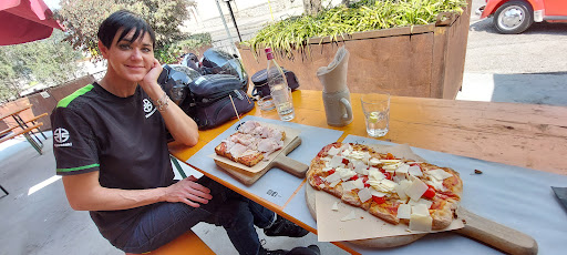 Si puó stare comodamente seduti all'aperto a bere fanno anche da mangiare, il plus é che non diffondono assordante musica. Punto di riferimento per chi ama camminare. Da una parte la Torre di Romano D'Ezzelino con Inferno -( Purgatorio-Paradiso) , che ispiró Dante il quale, pare, lo dedicó ad una sua fiamna, una gentil donna di Verona che di rimando lo trovava un pó pedante. Piú avanti Il sali scendi dei colli di Col Roigo, per arrivare alla Chiesa della Madonna dell'acqua a Mussolente. Guardando la montagna si diramano strade e sentieri, percorrendone uno il cinguettio degli uccellini si alternava con il gorgheggiare di una cantante lirica, si apre la campagna sotto il mio sgurdo. Svolazzano parapendii colorati. Il mio primo bacio, il mio priomo bacio me lo diede un uomo che credeva che l'Italia fosse questo:campi di grano e...