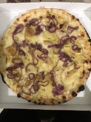 •pizza dura manco un piatto di legno! Ma magari fosse stata servita sul legno, almeno avrebbe avuto sapore..tra l’altro una con una forma ovale e rimpicciolita, con farina di kamut che quasi non vedo differenza eppure conosco il kamut.. insomma una pizza che non rende giustizia all’appetito. ZERO!! Per un prezzo oserei dire anche oltre la norma. Ogni ingrediente era un aggiunta di soldi, ma io di ingredienti aggiunti ho visto lo scherzo!!!