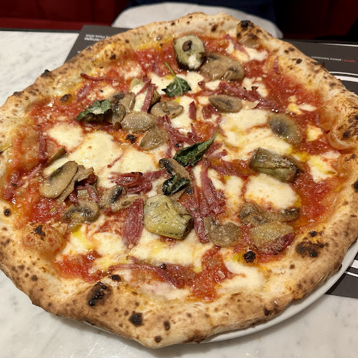 As a pizza lover, I was excited to try 50 Kalò, a renowned pizzeria led by Ciro Salvo, a third-generation pizza maker. The quality of ingredients and care put into crafting the perfect pizza is evident through their use of organic tomatoes, award-winning extra virgin olive oils, and seasonal menu changes. Despite being seated in the basement without a reservation, the unpleasant humidity and smell in the air couldn't deter my excitement for the meal ahead. Our order consisted of two huge Napoletana pizzas, and I must say, they were delicious. The light, digestible dough, a result of Salvo's expertise in super hydrated dough, and the combination of fresh, high-quality ingredients made for an enjoyable meal. You could really sense the history and tradition behind this restaurant. However, we couldn't help but compare 50 Kalò's pizzas to the sourdough pizzas at their nearby competitor, Berberè Pizzeria. As fans of sourdough, we found ourselves slightly more partial to Berberè's style. Additionally, our experience at 50 Kalò was marred by the inattentive staff and lackluster service. It seemed like they were more focused on the upstairs diners with reservations, leaving us feeling somewhat neglected. This was disappointing, considering the culinary accolades and recognition the pizzeria has received. In conclusion, 50 Kalò offers delicious Neapolitan-style pizza with rich history, but it wasn't our top pick, and the service could use improvement. Still, it's worth a visit if you're in the area and appreciate this style of pizza. Enjoy!