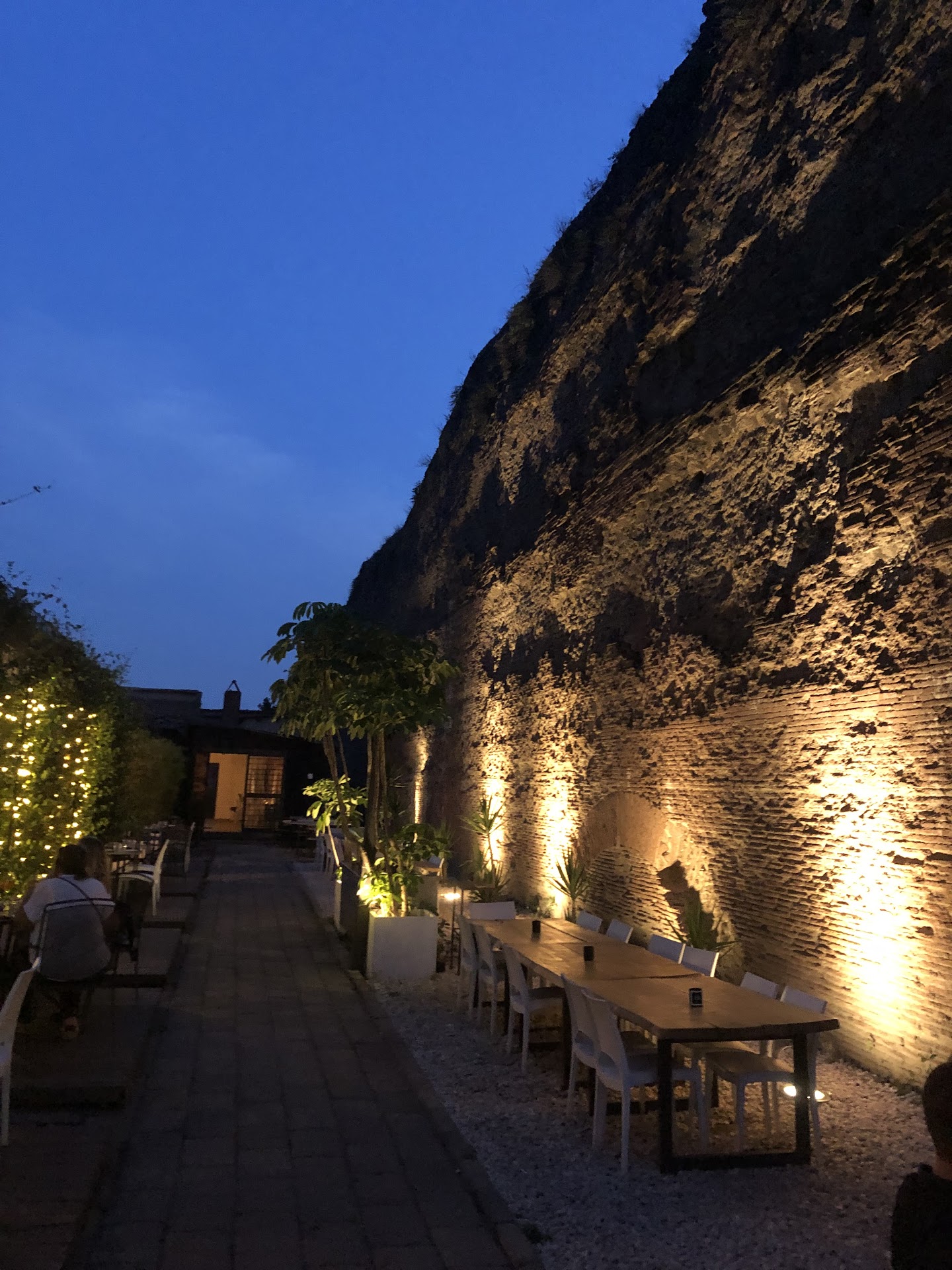 Read moreDispiaciuta dalla delusione, avevo grandi aspettative vista la location suggestiva, aimé un acquedotto quasi ormai completamente oscurato da una struttura per poter mangiare al coperto nonostante si stia all'aperto (capisco l'esigenza per via del covid e eventuale pioggia ma magari una cosa che lasciasse intravedere ancora l'acquedotto sarebbe stato più carino), comunque rimane una bella atmosfera. Avevo prenotato quasi un mese prima perché era l'anniversario con il mio compagno ed essendo il 1 Giugno, un prefestivo, volevo essere sicura di trovare un bel tavolo e così mi era stato promesso... A mio parere il nostro tavolo era uno dei peggiori, di fronte all'entrata al bar dei camerieri e ad una porta di legno che ogni tanto venivano ad aprire (mistero sapere cosa ci fosse dietro). Ordiniamo dopo un bel po di attesa un calice di vino (ne portano due non richiesti ma vabbè si festeggia fa niente) e dopo un'attesa di una ventina di minuti (un'attesa accettabilissima) ci portano le nostre tapas, buone, niente di eccezionale ma buone. Ancora affamati vogliamo provare il mix di 6 pezzi di pizza proposti nel menù, facciamo un segno al cameriere (sembra essercene solo uno che prenda le ordinazioni) ma niente nessuno ci guarda fino a che 40 minuti dopo mi sbraccio e il cameriere riesce ad intercettarmi (il cameriere era oberato di lavoro nulla togliere a lui ma vorrei sapere gli altri cosa facciano) a quel punto la fame era passata decidiamo di ordinare un dolce... che arriverà 1h e mezza dopo e 2 avvisi al cameriere dopo. Per farvela corta altri 20 minuti per avere il conto. Non si può, un ristopub deve essere dinamico rapido smart non si può essere così lenti e così disorganizzati, ho visto portare una torta ad un festeggiato spenta e messa all'angolo del tavolo mentre tutti gli invitati erano intenti a aprire i regali senza nemmeno avvisare, persone sbracciarsi per essere prese in considerazione per una ordinazione. Mi dispiace tanto tanto tanto, ma non...