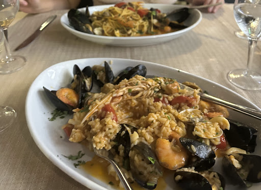 Read moreAmbiente, tranquillo, arredamento forse poco adatto per un ristorante dove si mangia pesce e/o pizza. Camerieri simpatici e veloci nelle portate. Il locale è gestito da sardi, quindi si trovano anche piatti tipici. Volendo si può mangiare anche fuori e in tranquillità, anche se i posti sono pochi, si sta bene poiché la via in cui è situato il ristorante, è una traversa di una via principale. Si mangia in prevalenza pesce e si mangia solo il "pescato" a disposizione. Ottimi i fritti, con un 10 e lode alla frittura di moscardini fra i vari antipasti, che si scioglie praticamente in bocca. Ma anche alici, calamari, gamberi ecc... spesso si possono gustare cannolicchi gratinati, na anche soutè. Presenti altri tipi di antipasti, a buffet. Anche se non li ho provati, i primi mi sembrano interessanti e gustosi, con porzioni giuste e non solo di pesce. Su ordinazione, è possibile mangiare piatti tipici sardi...dai culurgiones al maialino sardo (quest'ultimo, però, preferibilmente in inverno). Anche se il metodo di cottura è al forno e non allo spiedo, che, si sa, nn è la stessa cosa, ahimè. Ottime pure le grigliate miste... Migliorabile le misure dei crostacei e la scelta degli stessi, dove mancano prodotti di nicchia... (gambero rosso, viola, csrabineros, ecc....) o almeno credo poiché io nn ne ho ne visti e ne sentito parlare. Spigole ed orate gustosissime e di bella pezzatura, non coriacee...anche se fatte al forno. Ma cucinate sulla piastra, sono il top. Buona scelta anche per il resto del pesce di grande pezzatura e a fette tipo tonno e spada. Contorni nella norma (mancano le patate al forno). Come pure i dessert, ad eccezione delle "seadas" al miele, che anche se nn fatte a mano, sono sempre un dolce tipico da provare. Poi, gli "ammazzacaffè" (mirto discreto, filuferru e limoncello), sono offerti dalla casa assieme a dei biscottini artigianali. Insomma, qlcs è migliorabile ma nel complesso, è un posto dove poter andare, sperando che non si adatti alla monotonia delle portate e dei clienti di passaggio stranieri. Costi, nella norma ma dipende sempre da ciò che si mangia e soprattutto si beve. Personalmente, ci andrò di nuovo, se nn altro, anche per "l'attesa"... pari a zero e alla simpatia del personale (nn tutti...
