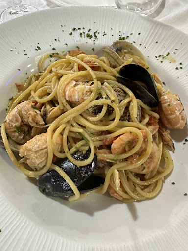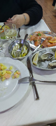 Sono tornato a pranzo da 4 a 5 stelle, mi sento di dire che è un ristorante di pesce davvero di buon livello per cibo servizio al tavolo e location. Ci sono andato dopo un pò di tempo dopo aver letto le varie recensioni che nel frattempo erano state apportate, bhè; Signori cari se la proprietaria non ride sempre è perchè ha un locale insieme al marito (da quanto ho capito) da portare avanti ma nonostante tutto è molto cortese e non si risparmia di giocare con bambini presenti nel ristorante. Per il servizio sapendo che c'è sempre da fare esperienza, ho mangiato tanto fuori casa ed È LA PRIMA VOLTA CHE MI CADE LA FORCHETTA E DOPO 3 SECONDI LA CAMERIERA ME LA SOSTITUISCE! Il pesce è fresco lo sapevo di mio perchè un trasportatore che conosco suggerendomelo mi ha detto che ogni mattina vede il mezzo del pesce scaricare. Tutto buono infine, ho allegato delle foto nelle quali vedrete gli assaggi dei primi da menù, sono 2/3 di un primo intero...tanta roba. Antipasto molto buono e grigliata super..infine ho fotografato il vino della casa, guardate la foto non è la solita caraffetta anonima . Cameriere simpaticissime, le donne di casa sono rimaste contentissime. Ci riandrò davvero presto, la mancia era un dovere. Ps: non conosco personalmente e lo giuro il proprietario. Spero di essere stato utile. Buona mangiata a tutti e buon lavoro ai proprietari e alle cameriere di questo locale.