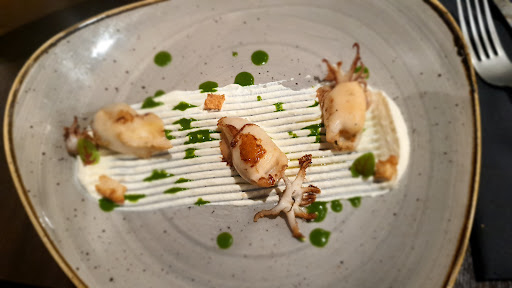 Oggi pomeriggio stavo cercando un ristorante in zona che però fosse speciale. Sai, viene il mio moroso da Brescia, cerchiamo di mostrare la ristorazione locale al suo massimo splendore. Fatto sta che Google mi tira fuori questo posto, Alambicco, che già dal nome mi suonava bene. Però, piccola nota dolente, la valutazione totale è 4.9 su 5. Che se da una parte è sicuramente positivo, dall'altra sa di fake. Cioè, possibile che tutti hanno dato il massimo dei voti? Ormai diventa una questione personale tra me e Google. Decido di andare. Only the braves. Arriviamo verso le 21, locale molto elegante, atmosfera rilassata e romantica. Tocco di classe: sedie in velluto verde e musica jazz in sottofondo. Dice: e se non ti piace il jazz? Eh beh, ma tanto io lo adoro. Sì ok ma il cibo? Vogliamo sapere del cibo! E niente, Google vince anche stavolta e si conferma portatore di verità assoluta. Ordiniamo due antipasti (julienne di calamaro e baccalà con maionese rosa), uno spaghettone, due calamari ripieni, cicorietta ripassata, mousse di cioccolato con riso soffiato e frutti rossi. Due calici di Fiano top. Non sono riuscita a trovare un singolo difetto. Cibo squisito, alta qualità. La cicorietta me la porterò nel cuore. In definitiva: buonissimo, la qualità c'è e si sente. È un posto riservato, intimo, romantico, quindi per favore evitate di portarci bambini e comitive di ragazzini che festeggiano il quindicesimo compleanno. Il parcheggio è difficile da trovare essendo in pieno quartiere Trieste quindi armatevi di pazienza. Un feedback che mi sento di dare è di puntare anche su un'offerta vegetariana. Il locale è valido, sono sicura che coprire il vegetariano per il cuoco sarà...