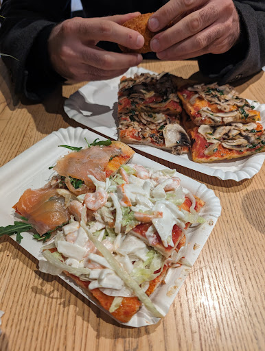Read moreScusate aggiungo un fatto Che cmq e davvero tanto Pagare quasi 10 euro Per due pezzettini di pizza E una coccola da 450ml In più la pizza già con i pezzi tagliati Ma dove se mai visto scusate Bela esperienza di m..... Grazie alla vostra commessa con occhiali In primis devo però lanciare una freccia a vostro favore La pizza davvero buona Anche se aime avevano tutte e due i gusti scelti piccole pecche da riconoscere In primis quella con formaggio chissà di che è pochissima salsiccia E l'altra veramente troppo oliosa da oliarmi tutto per causa anche della falsità e svogliatezza di lavorare della vostra commessa gentile solo all'apparenza Visto le proprie menzogne e ora vele elenco tutte e due Anche se mi dispiace del suo comportamento E la prossima volta o disposizioni o no si ricordasse che un cliente a sempre ragione Anche perché ne sa più di lei Allora in primis e tornando al discorso di essermi sporcato per causa sua e la sua falsità E riferito al perché una coppia di ragazzi presa prima la pizza di me aveva preso l'ultimo cartoncino a portare via E a suo dire a me la stava mettendo su un vassoietto con intorno la finta carta oleosa Senza mettere però a sua distrazione il foglio anti olio Solo perché faceva tutto ciò Ripeto a suo dire visto con i miei occhi dopo la conferma della sua bugia Che per farvela breve a me la mette a la perché di certo non gli andava di di chiudere un cartone per pizza Cmq fatto sta che dopo essermi pulito e sopratutto preso un coffe E uscita da la una cliente con il cartone in mano Cmq a prescindere questo La cosa che ma dato fastidio e non poco E che non ha fatto andare una cliente al bagno A suo dire solo perché glielo avevano imposto e peggio ancora La sua giustificazione era perché i titolari glielo avevano detto E dopo ha aggiunto ancora sulla sua menzogna noi non facciamo cmq servizio fuori e il bagno non si può utilizzare E le uniche due motivazioni però E solo secondo me Ma sicuramente sono tutte e due giuste In primis non gli andava di ripulire poi la sera E in seconda cosa è che tanto nemmeno avrebbe consumato e non sarebbe stato giusto fargli usare il bagno Cmq per legge e sopratutto da decreto e "andatevelo a leggerlo" In zona gialla e obbligo far usufruire dei propri servi anche a chi non consuma nulla Cmq complimenti per la pizza E non per la bella figura o chi scegliete di far rappresentare il vostro nome Che grazie ad incompetenti sopratutto nella materie più classiche disonora Tutto ciò che di buono a...