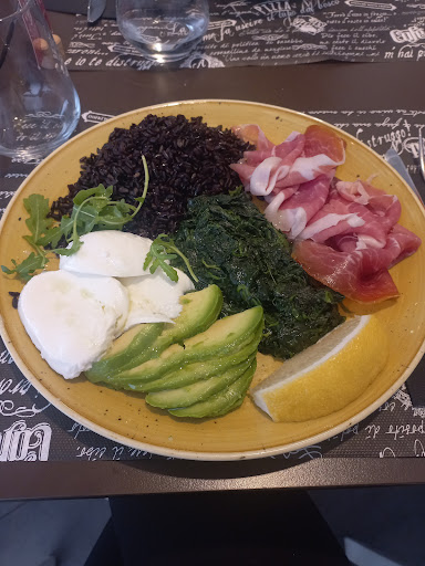 Read moreDecidiamo di fermarci a pranzo durante la pausa di un corso tenuto nell'hotel, di sabato: dopo 10 minuti che ci hanno fatto accomodare, il tavolo non era ancora apparecchiato (tovagliato di carta e posate, mica tovaglia e servizio) e non avevamo i menù, dopo mezz'ora e diverse richieste riusciamo a ordinare per sentirci dire che i l'attesa per i piatti cucinati erano di almeno mezz'ora e dovevamo scegliere tra le insalate o il piatto freddo da comporre con carbo+proteine+verdure+ extra per formaggio (11€ come in foto). Ordiniamo anche 2 insalate: una arriva senza i crostini e comunque dopo 15 minuti. Chiediamo il pane 3 volte inutilmente (arriverà a piatti finiti). Torniamo al corso in ritardo con la fame. Non contente, decidiamo di dare una seconda possibilità all'aperitivo: 3 cameriere tra sala (vuota) e bancone che girano senza meta, dopo 15 minuti senza che nemmeno una prenda un'ordinazione, veniamo...