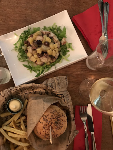Read moreDopoLavoro ci rechiamo presso ponte Milvio per gustare, viste le recensioni, un buon panino ed una frittura. Non ci siamo neanche seduti (All'interno - luglio) che già il proprietario ci incalzava x prendere l'ordine... Iniziamo con un antipasto: frittura di moscardini che si confondevano tra i sapori d'olio esausto ed il molliccio , un panino impastato dalla casa (buono ma dolce) con gamberoni (2 gamberi nani) in una cespa di insalata accompagnato da patatine fresche fritte non male, ma molto oleose, un secondo di merluzzo in pastella con verdure buono e 2 calici di vino alla mescita PECORINO. Per non farci mancare nulla, un ragazzo, che come casa sua, entrava privo di mascherina in cucina, raccattava ogni volta una sedia, per far accomodare all'esterno amici&.. ambiente molto minimal, attenti all'ecologia, dalle posate ai contenitori per salse. Dulcis in fundo, il conto... Pos fuoriuso ci dicono, mostrandoci un cartello microscopico, scritto a mano, ma nulla se fossimo usciti di lì con meno di 70€ di spesa. Il punto strategico, ahimè, gli permette questi comportamenti,prezzi e porzioni...